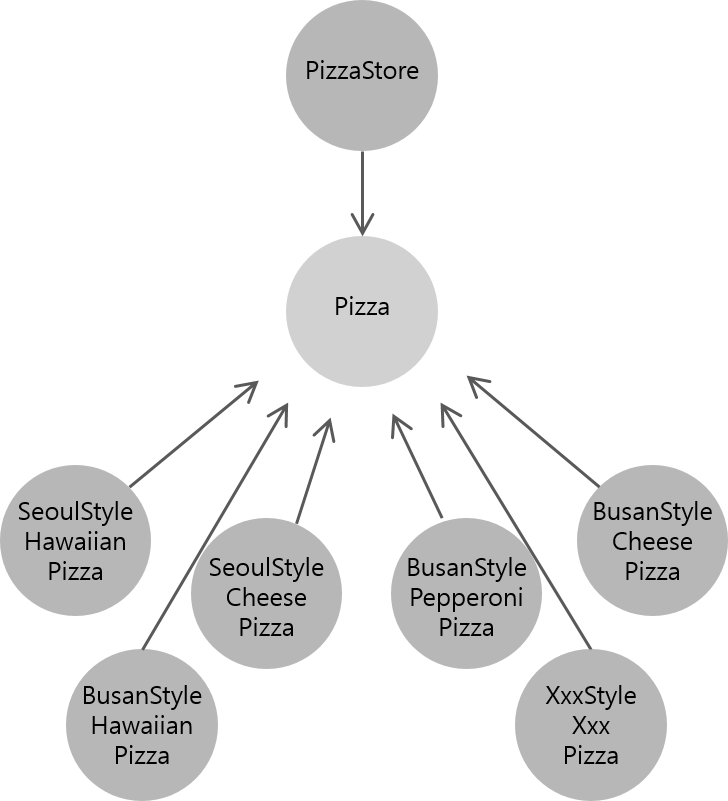 PizzaStore busanStore = new BusanPizzaStore(); // ๋ถ์ฐ์ง์ ์์ฑ