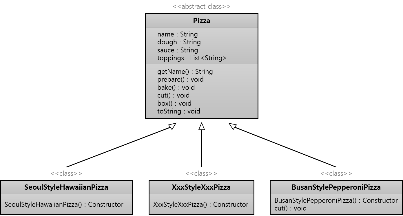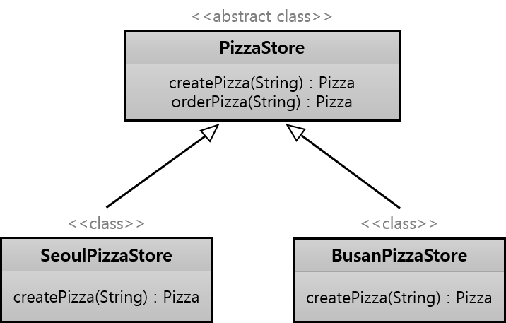 PizzaStore seoulStore = new SeoulPizzaStore(); // ์์ธ์ง์ ์์ฑ