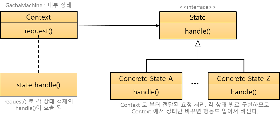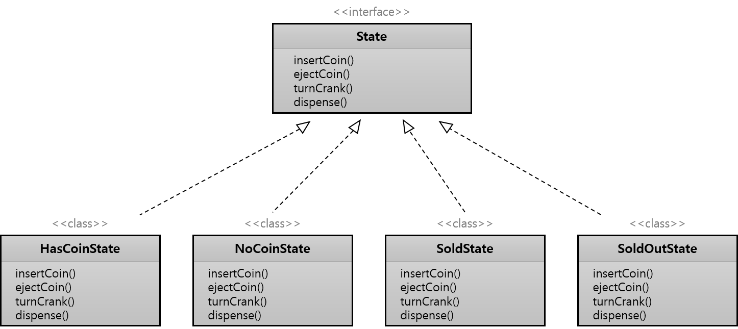- κ° State μ νλ (Behavior) μ λ³κ°μ ν΄λμ€λ‘ κ΅μ§ν μμΌ°λ€.