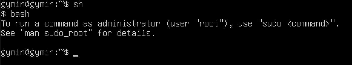 sh 이 실행되어 프롬프트가 $ 로 표시된다.
