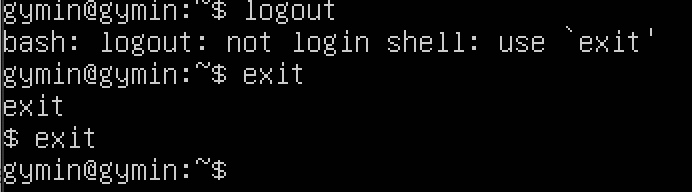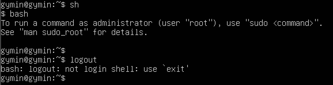 셸 위에 기동한 셸은 로그인 셸이 아닌 비로그인 셸(일반 셸)이다. 그래서 logout 명령어로 로그아웃을 시도하면 에러가 발생한다.