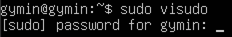 /etc/sudoers 파일을 텍스트 에디터로 단순히 편집하는 것은 위험하다. 오타 등이 발생하면 sudo 명령어 사용에 문제가 발생하기 때문이다. 그래서 sudoers 파일을 보다 안전하게 편집할 수 있는 명령어 visudo 가 존재한다. 이 명령어는 슈퍼 사용자의 권한이 필요하므로 다음과 같이 sudo 명령어를 사용하여 실행하거나 su 로 슈퍼사용자로 전환한 후 실행해야한다.