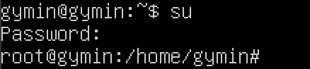 su 명령어를 입력하면 패스워드 입력이 출력되며 설정한 패스워드를 입력하면 슈퍼사용자(#) 로 전환된다.