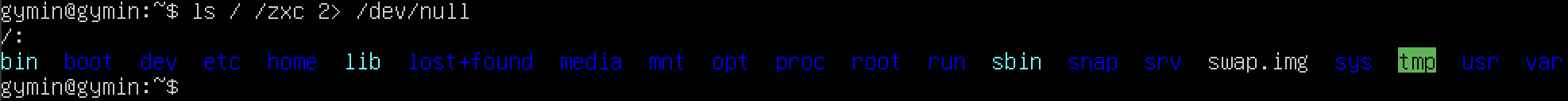 1.6.2. 표준 에러 출력을 /dev/null 로 리다이렉션 : 에러메시지 출력 무시