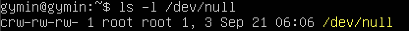 다음 명령어로 /dev/null 이라는 파일이 존재하는지 확인해보자.
