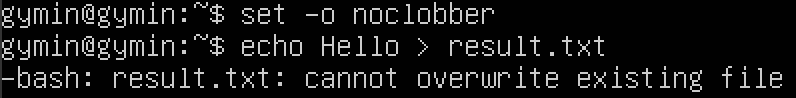 $ set -o noclobber # 리다이렉션으로 덮어쓰기 방지설정