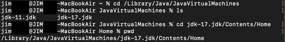 $ cd /Library/Java/JavaVirtualMachines/jdk-17.jdk/Contents/Home