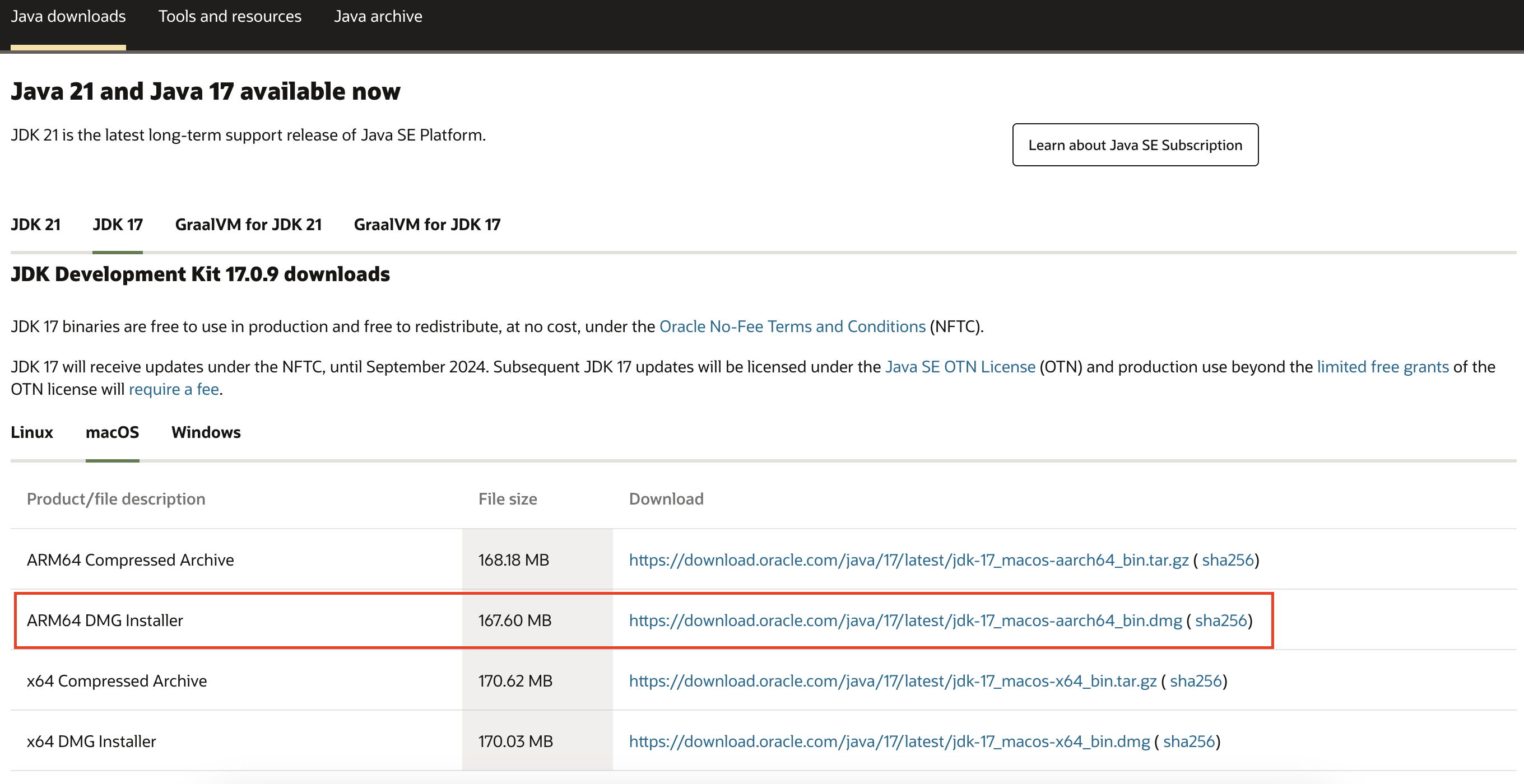 M2 맥북에 기존에 11 버전이 설치되있어서 17 버전으로 변경하기 위해 아래의 17버전을 다운받아 설치했다.