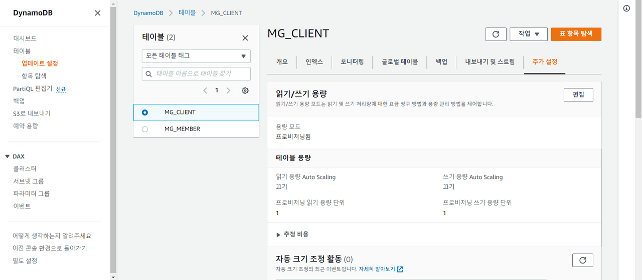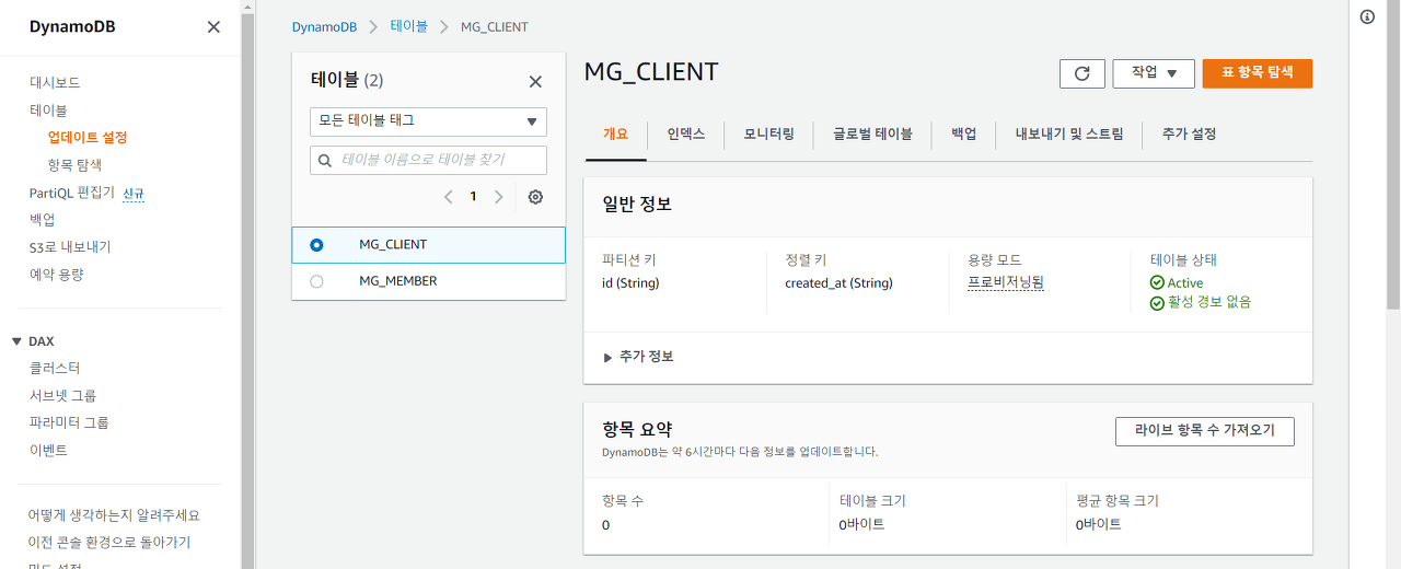 MEMBER 테이블은 [2. 【방법 1】 AWS Management Console 화면에서 작성하기] 에서 우선 작성했고, PowerShell 에서 실행한 커맨드라인으로 CLIENT 테이블이 작성된 것을 확인할 수 있다.