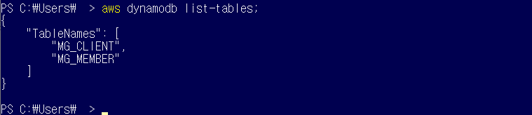 - DynamoDB 에 작성되어있는 테이블 리스트를 출력하는 커맨드 라인