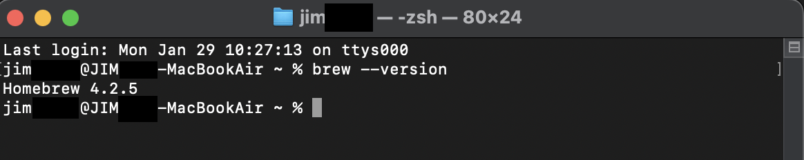 (echo; echo 'eval "$(/opt/homebrew/bin/brew shellenv)"') >> /Users/jim /.zprofile