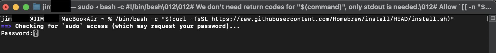 ==> /usr/bin/sudo /bin/mkdir -p /Users/jiminryu/Library/Caches/Homebrew